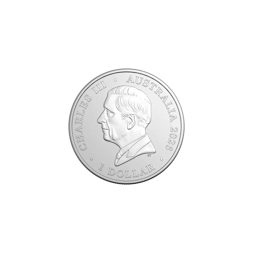 The obverse features the likeness of King Charles III along with the issuing country, Australia, the $1 denomination and the year of issue 2026. The design follows the classic style typical of modern Australian investment coins.