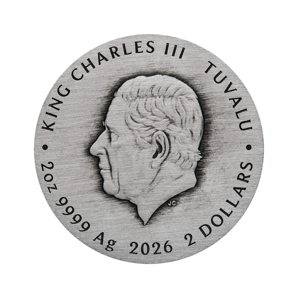 The coin has been individually "aged" to give it a unique surface reminiscent of the wear of an ancient artifact. As a result of this treatment, the appearance of individual coins in an issue may vary.