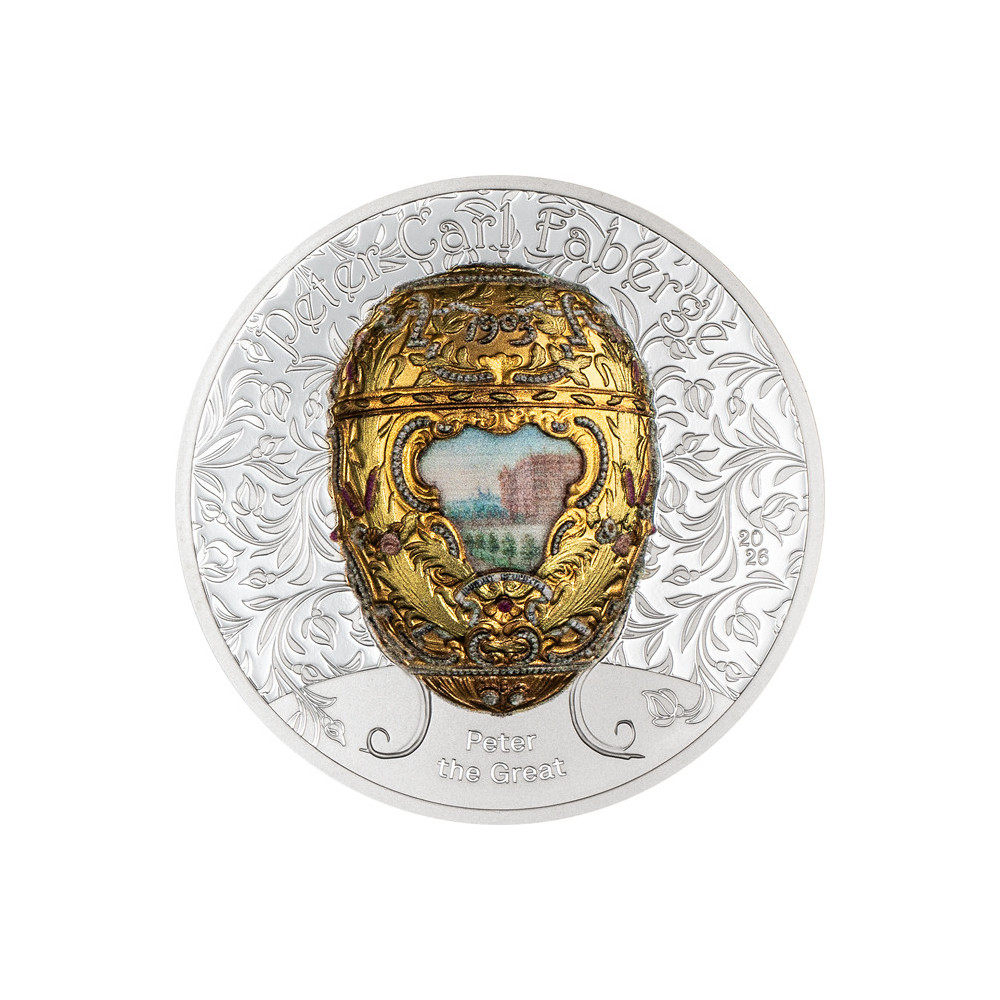 With a proof finish and complemented by a glossy "Peter the Great" inscription, the coin's motif stands out with remarkable depth. With a relief height of approximately 2.2 mm and a characteristic scalloped edge, this collector's piece is not only a technical masterpiece of coinage, but also a tribute to the unparalleled artistry of Peter Carl Fabergé.