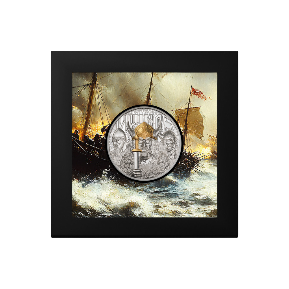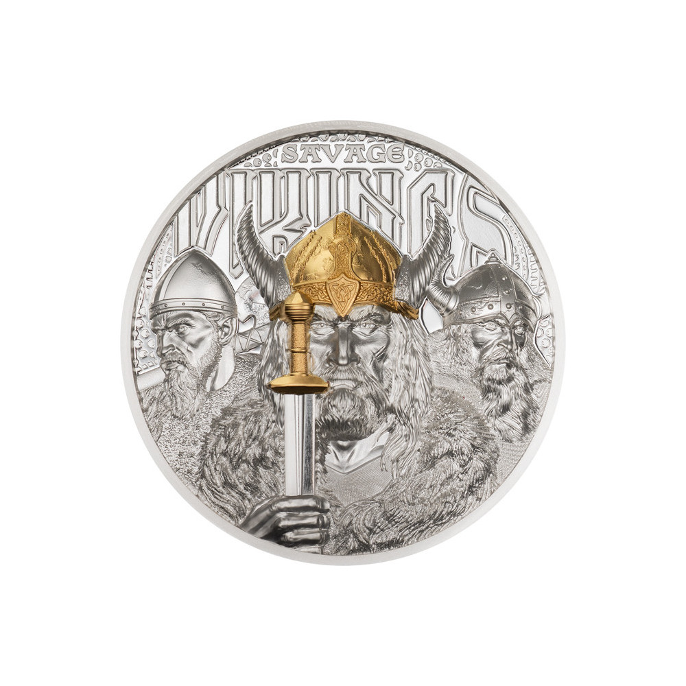 This impressive 3-ounce silver coin pays tribute to legendary Vikings Ragnar Lodbrok, Ivar Boneless and Björn Ironside. It is crafted in high relief with selective gilding and captures the strength, courage and mythical heritage of the Nordic warriors. This masterpiece comes in an elegant box with a certificate of authenticity and is limited to only 500 pieces worldwide.