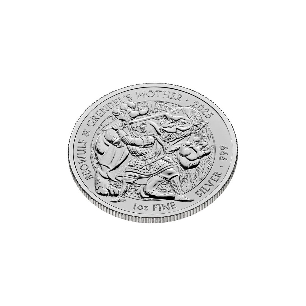 Intrați într-o lume a eroilor mitici și a bătăliilor feroce. A doua monedă dintr-o colecție din trei părți inspirată de poemul epic "Beowulf" aduce un omagiu personajului legendar din această capodoperă a literaturii engleze vechi. Bătută în cel mai fin argint 999, această monedă înfățișează lupta dramatică dintre Beowulf și mama lui Grendel - o reprezentare concepută cu măiestrie de David Lawrence. Această monedă este o adevărată bijuterie pentru colecționari și investitori deopotrivă.