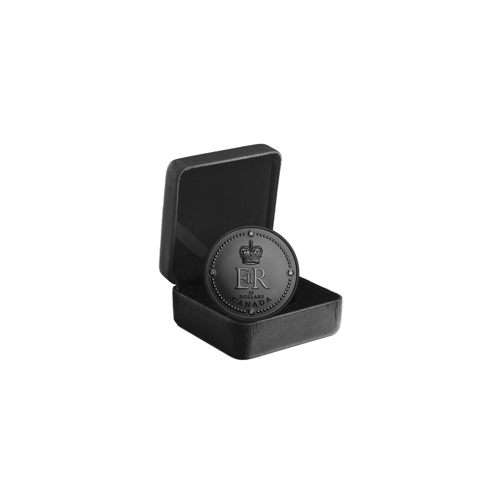 Cifrul regal al reginei Elisabeta a II-a este unul dintre cele mai recunoscute simboluri ale domniei istorice, iar majoritatea canadienilor sunt obișnuiți să îl vadă pe însemnele ordinelor, decorațiilor, medaliilor și insignelor. Dispozitivul personal al reginei Elisabeta a II-a a fost sinonim cu coroana și a servit drept simbol al suveranității în Canada timp de 70 de ani. Acesta a fost recreat și păstrat pentru totdeauna pe această insignă din argint pur 99,99% placată cu rodiu negru, care aduce un omagiu reginei Elisabeta a II-a, gardianul continuității care a propulsat, de asemenea, monarhia în vremurile moderne.