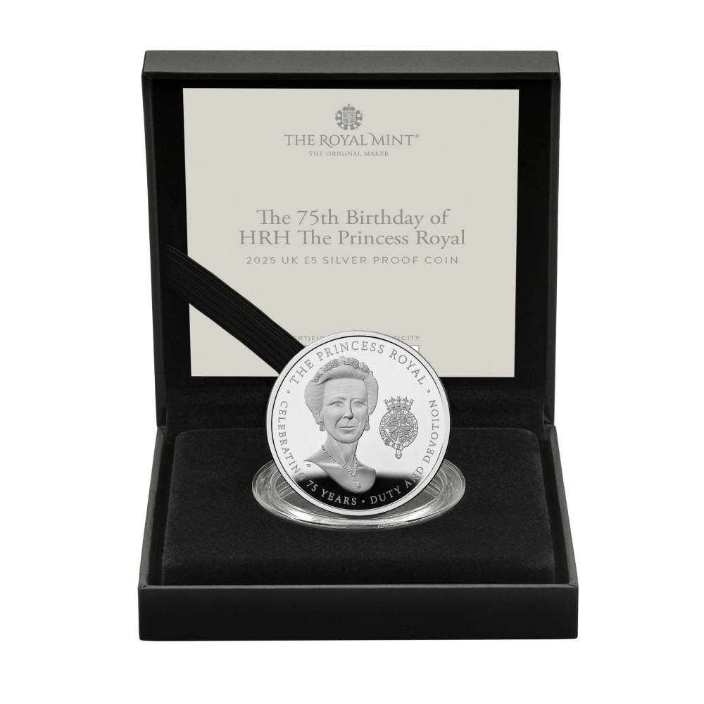 În semn de recunoaștere a angajamentului său neclintit față de Coroană, Monetăria Regală este mândră să sărbătorească cea de-a 75-a aniversare a Prințesei Anne cu prima monedă britanică produsă în onoarea sa. Reversul monedei, care poartă stema ei oficială, a fost aprobat personal de Alteța Sa Regală și prezintă un portret oficial al prințesei Anne realizat de John Swannell, membru al prestigioasei Royal Photographic Society.