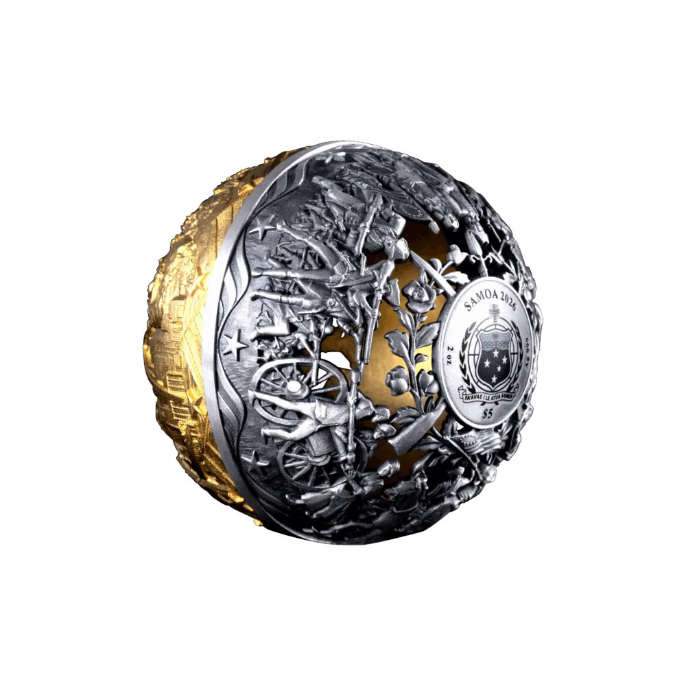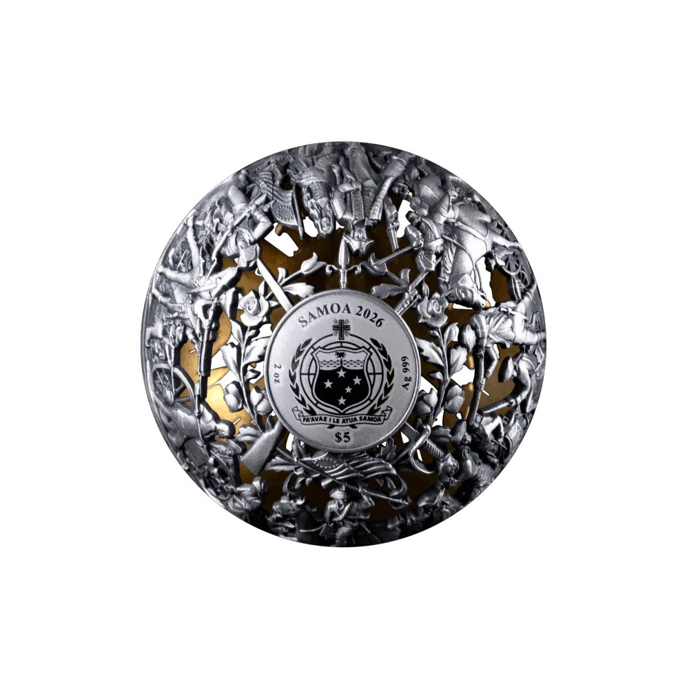 Această monedă extraordinară din argint de 2 uncii întruchipează tensiunea dintre revoluție și libertate. Două forțe unite în sângele Americii. Revoluția ca strigăt de sfidare împotriva dominației străine. Bătălii gravate în istorie. Fiecare lovitură pulsând cu autodeterminare. Fiecare victorie, un pas spre un nou răsărit. Libertatea ca o flacără vie. Simboluri născute din această luptă: Statuia Libertății ridicându-și torța, semnul Hollywood strălucind deasupra viselor, podul Golden Gate atârnând în lumină, Empire State Building înălțându-se spre cer. Toate captate în argint. Învelite într-un finisaj antic. Placat în aur de 24 de carate. Întrețesut cu filigran la fel de delicat ca respirația. Moneda este inclusă într-o cutie cu certificat de autenticitate. Ediție limitată de 1 776 de piese la nivel mondial.