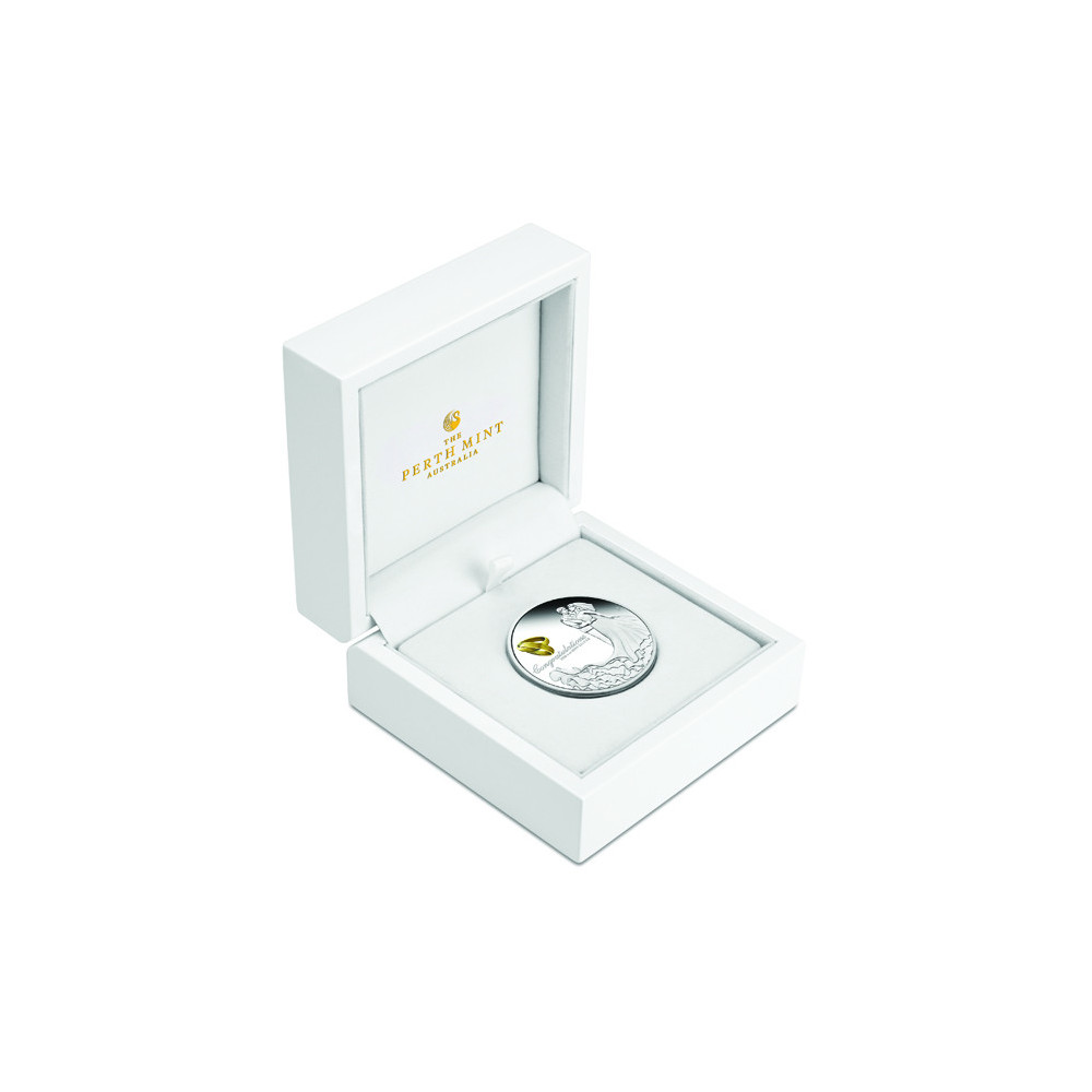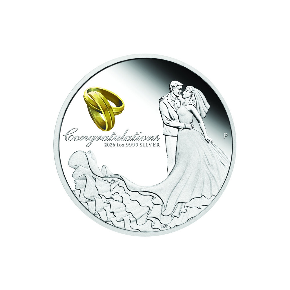Această frumoasă monedă din argint este o altă bijuterie de la "The Perth Mint Australia". Nouă pentru 2026, este potrivită pentru a ura Căsnicie Fericită.